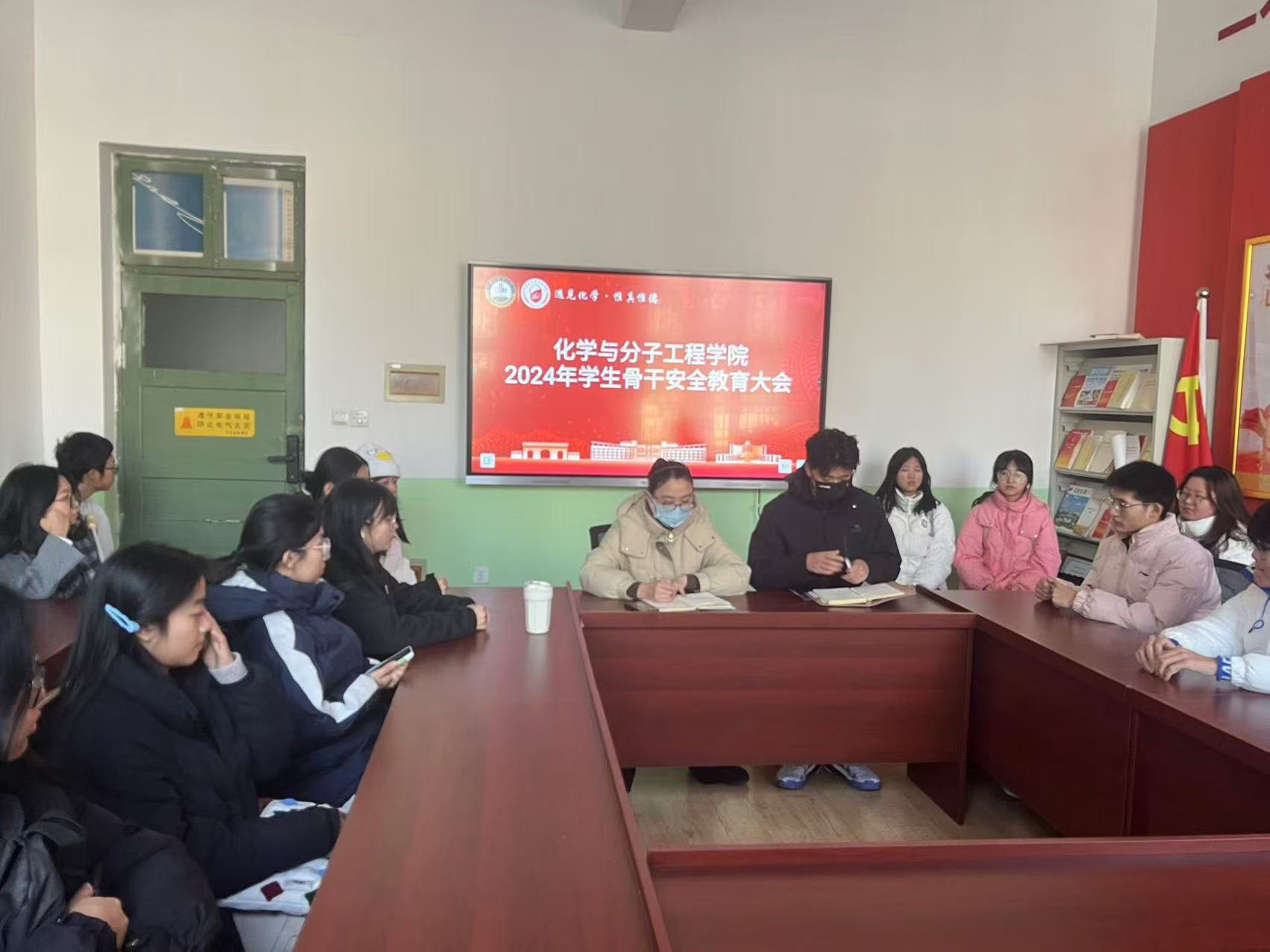 2024年3月,化学院团委在一政243召开了2024级本科生学生骨干安全教育大会。本次大会由陶亚亚老师和张玉海老师主讲,2024级全体班长与团支书参加,旨在提升学生骨干的安全意识和危机应对能力,营造安全稳定的校园环境。
