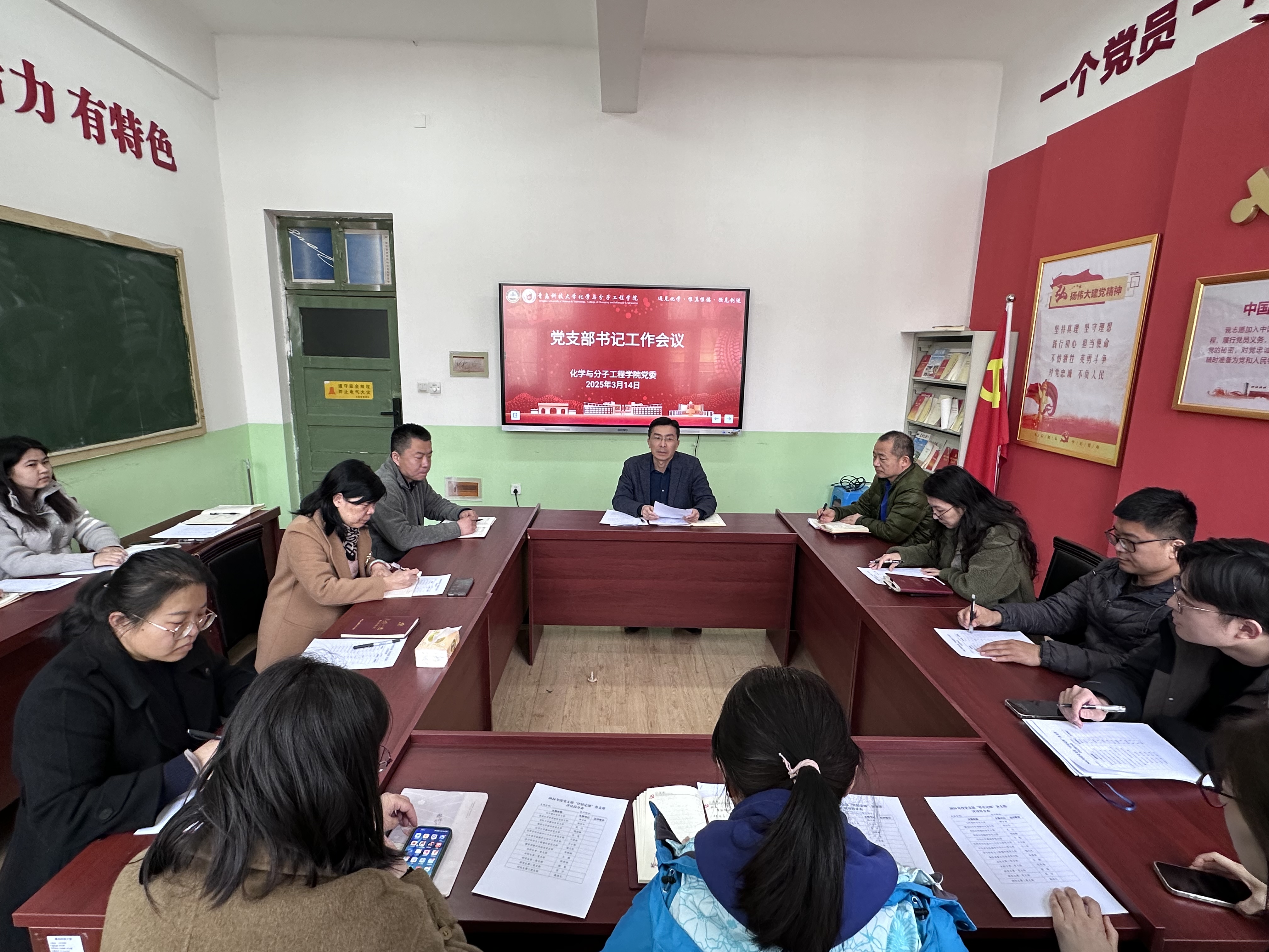 3月14日,化学院召开党支部书记工作会议,安排部署2025年党建工作。学院党委书记肖强主持会议并讲话,党委副书记兼副院长刘尧、副处级组织员张同雷及全体党支部书记参加会议。