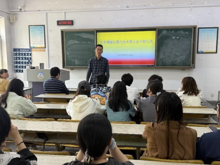 为深入落实推进我校2025年春季“双千”计划微专业建设工作,聚焦化学测量仪器与技术专业人才培养,学院于2025年5月19日在四方校区一教106举行“化学测量仪器与技术”微专业开班仪式。化学院副院长郭维斯、应用化学教研室主任贾肖飞、任课教师代表参加了会议,会议由微专业负责人李东祥主持。
