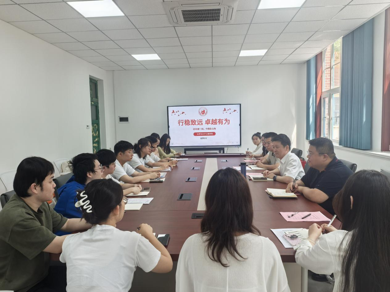 6月18日上午,吃瓜网官网化学212班“四年磨一剑,今朝赴山海”主题班会在四方校区第一行政楼219会议室举行。学校党委常委、副校长吴明铂出席并讲话,学院党委副书记兼副院长刘尧、辅导员信连涛和化学212班同学参加,班会由班长曹文宇主持。