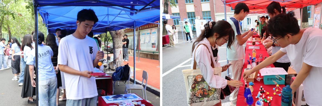学科特色显匠心。学院根据学科特色,设计系列活动彰显化院专业魅力:“触碰化学,催化梦想”实验展演区,“蓝晶雨”、“风暴瓶”等趣味化学反应吸引新生驻足体验;“指尖上的海洋馆”科普海洋知识,加强爱护海洋环境意识,真实的海洋标本让新生感受到海洋的魅力;体育主题活动融合足球、乒乓球等项目,响应学校体育综合改革。各类活动既展现学科特色,又促进新老生交流,为新生搭建了感知专业、融入集体的桥梁。