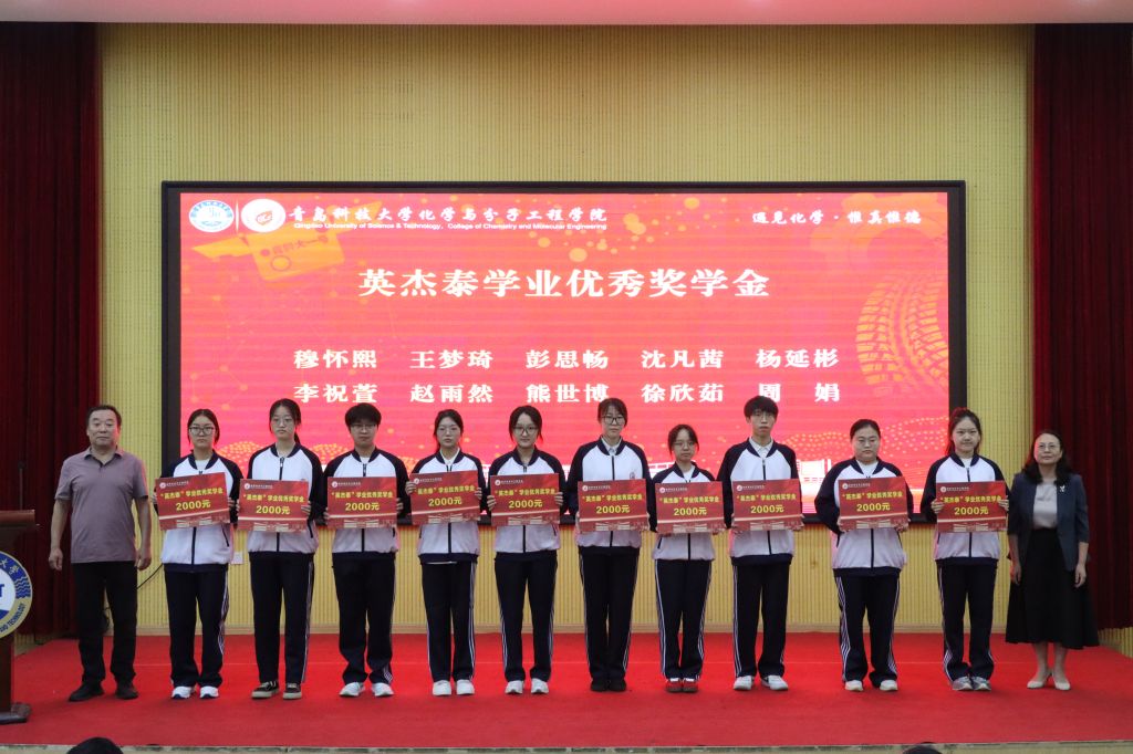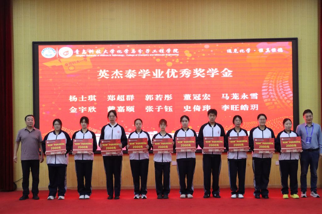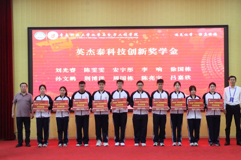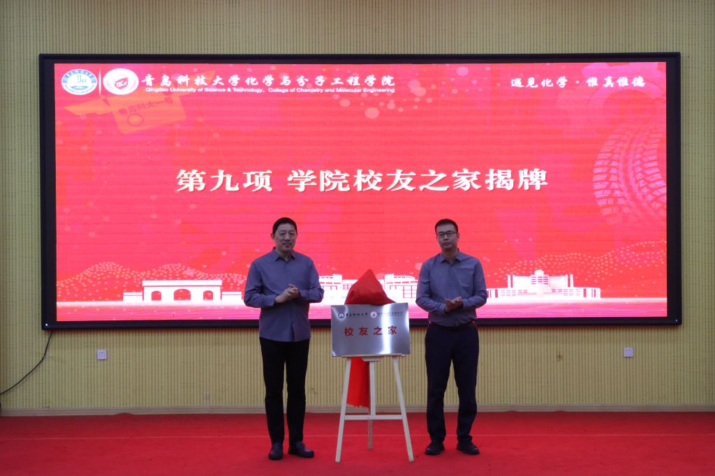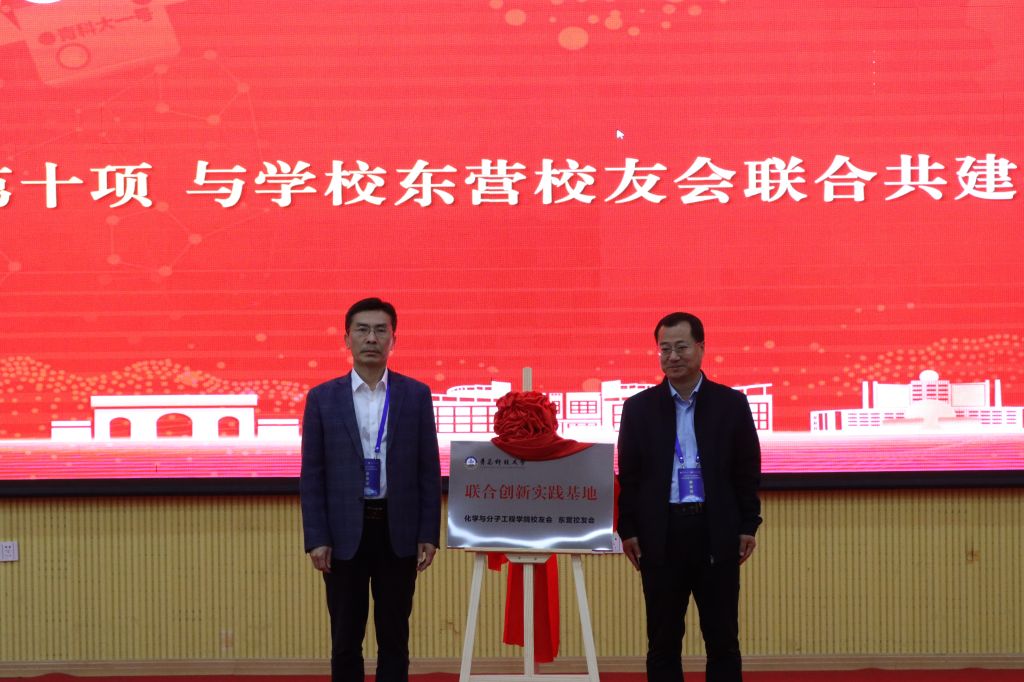 学院党委书记、学院校友会秘书长肖强与学校东营校友会秘书长赵海永校友为校友会联合共建揭牌。学院校友会会长汪恕欣与学院校友会常务副会长李强为学院校友之家揭牌。会上,还举行了“英杰泰”奖学金颁发仪式,青岛英杰泰新材料有限公司技术总监路明义、学校教务处处长马翠萍、省部共建生态化工国家重点实验室培育基地主任王磊、学校人事处副处长傅云磊为获得“英杰泰”学业优秀奖学金、科技创新奖学金的学生颁奖。