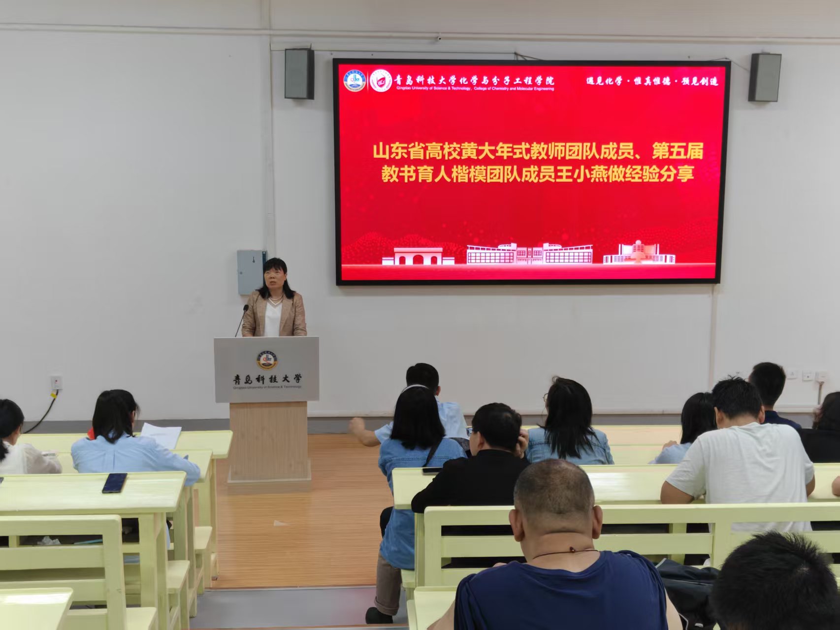 学院山东省高校黄大年式教师团队成员、2024年度学校教育先锋吴占超老师,以及山东省高校黄大年式教师团队成员、第五届教书育人楷模团队成员王小燕老师,分别结合自身多年教学实践与育人经历,从教学方法、学生培养等多个方面,分享了在育人过程中的点滴感悟、典型案例与成功经验,为全体教师提供了可借鉴、可参考的实践范本。