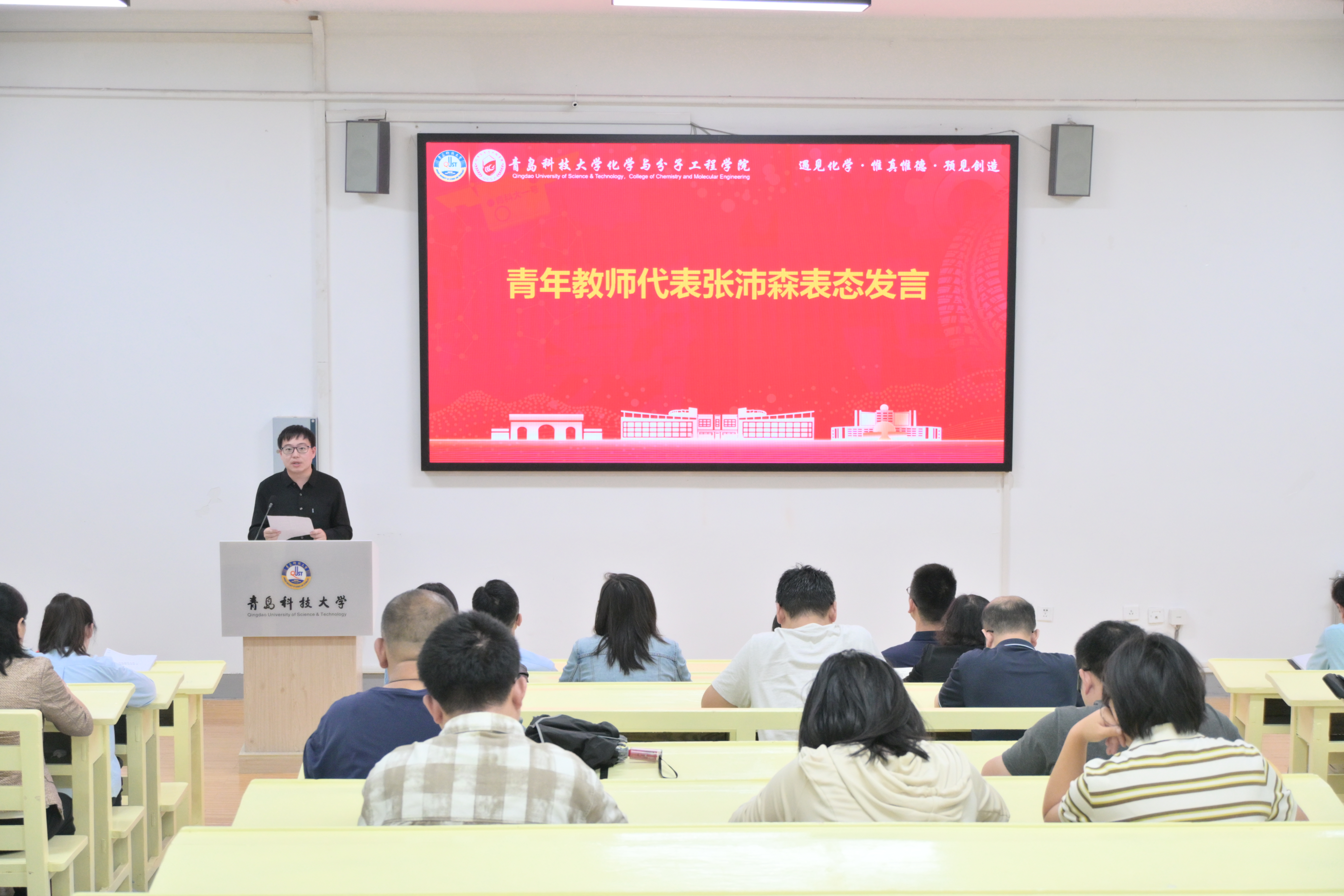 青年教师代表张沛森作表态发言,表达了青年教师积极投身教育事业、坚守师德规范的决心和信心。