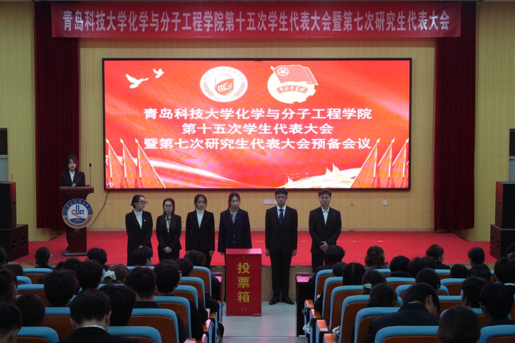 11月25日,青岛科技大学吃瓜网官网第十五次学生代表大会、第七次研究生代表大会在尚舜报告厅隆重召开。学院党委副书记兼副院长刘尧、团委书记闵繁盛、全体辅导员、校研究生会主席团成员臧欣然、高分子学院学生会主席团成员孟喆、学院第十四届学生会主席团成员王磊、学院第六届研究生会主席团成员史润昭,以及80名学代会代表和33名研代会代表出席大会。