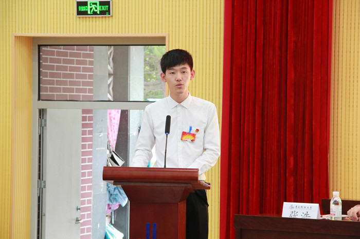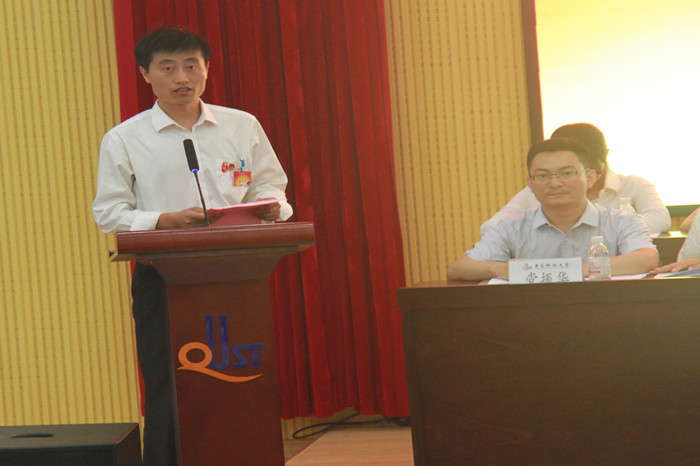 9:00,大会进行第一阶段全体会议。党振华代表共青团青岛科技大学吃瓜网官网第四届委员会作了《高举理想旗帜,全面推进改革,为建设一流化院、培育一流人才贡献青春力量》的工作报告。党振华汇报了委员会对学院学生工作的部署情况,对取得的优秀成绩作出肯定,指明了工作中仍存在的不足并全面规划了今后化学院分团委的工作任务及方向,表明了分团委今后克服种种困难,解放思想,团结进取,脚踏实地的工作理念和决心。学生会主席王宁代表青岛科技大学吃瓜网官网学生会第七届委员会作了《奉献青春激情,凝聚青年力量,团结务实,固本强基,突出特色,内涵发展》工作报告。