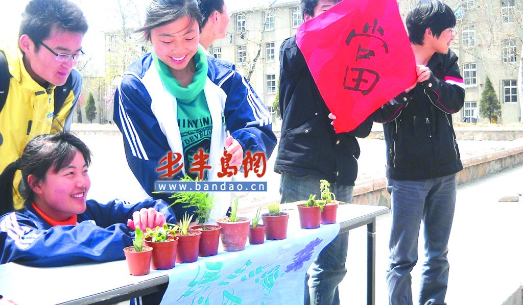 “低碳”是2010年很流行的一个词语,全国两会也积极倡导低碳环保的生活方式。为了响应这一倡议,青岛科技大学的同学们想了一个好点子,他们在学校里开起了绿色当铺。大学生自己出钱买盆景,鼓励身边的同学拿旧电池等废品免费兑换 ,这个店铺一开张,就受到了同学们的广泛称赞。