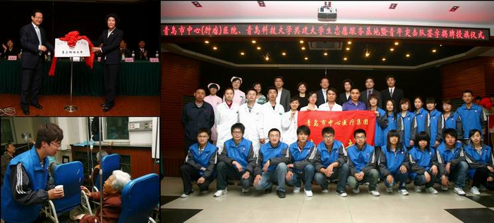 在“五四”运动92周年到来之际,青岛科技大学与青岛市中心医院共同建立青年突击队,开展医院导医、咨询、预约、护送等活动,进一步提高广大青年学生“爱国,进步,民主,科学”的“五四精神”。青岛科技大学副校长罗公利、团委书记刘传华、化学院党总支副书记孙晓刚,青岛市中心(肿瘤)医院党委副书记宋岩、副院长张春玲、中心医院团委书记滕伟等出席了签约揭牌仪式,化学院的志愿者代表及中心医院青年突击队代表60余人参加了仪式。