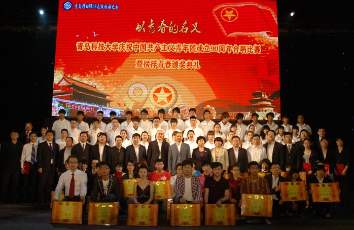 歌声嘹亮,团旗飘扬。5月4日晚,“以青春的名义”青岛科技大学庆祝中国共产主义青年团成立90周年合唱比赛在崂山校区举行。我院由副院长匡少平带队,演唱的《呵护蔚蓝》唱出了大海的博大,歌声动听而富有感染力,加之志愿者的手语表演,深深的打动了在场的观众。最终,化学院以总分第一名获得合唱比赛一等奖,并获优秀公益项目。据悉,这是化学院合唱的历史最好成绩。