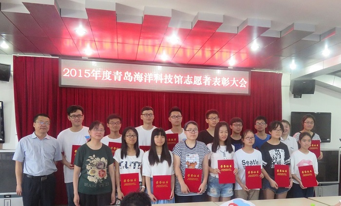 7月2日上午,2015年度青岛海洋科技馆志愿者表彰大会在青岛水族馆举行。青岛海洋科技馆党总支书记王云忠,科普辅导员于红梅,科普管理工作者丁剑玲出席大会并为优秀志愿者颁奖。青岛科技大学和中国海洋大学等驻青高校六十余名志愿者参加了表彰大会。