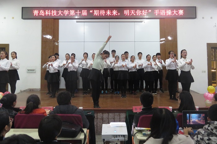 11月25日,由青岛科技大学心理健康教育与研究中心主办,化学院5•25心理健康协会承办的第十届“期待未来,明天你好”手语操大赛在四方校区讲学厅顺利举行。四方学生事务中心主任、国家二级心理咨询师魏一众,高分子学院、环境学院心理工作站站长及各学院分团委老师、各院学生组织负责人参加了此次活动。