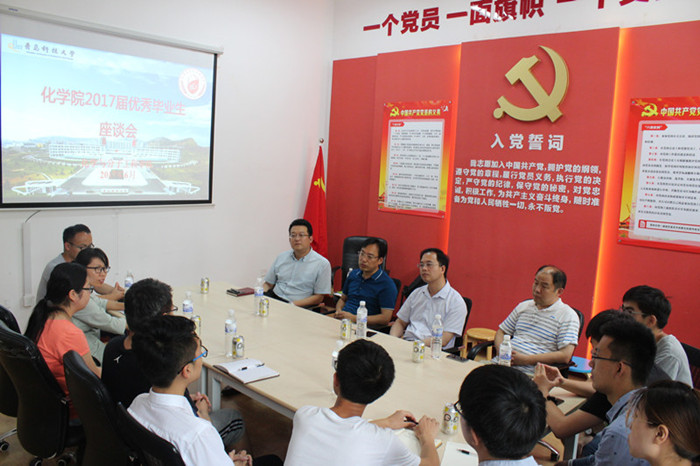 优秀毕业生座谈会。学院围绕“依惜别,献良策”主题,召开2017届优秀毕业生座谈会,省级优秀毕业生、西部计划志愿者、研究生支教团成员、征兵入伍同学参加会议。院长罗细亮勉励毕业生“一朝化院人、一生化院情,不论走到哪里都要牢记母校,做化院学子的优秀典范,用自己的青春和活力为科大争光”。国家重点实验室培育基地主任李再峰希望每一名优秀毕业生都能够发扬科大精神,以实际行动践行橡胶品格。副院长高洪涛鼓励每一名毕业生要发扬不怕苦、不怕累、能吃苦的精神,时刻以五有科大人的高标准严格要求自己,奉献社会。党总支副书记张壮号召每一名毕业生常回母校看看,回忆科大事、回忆科大人、做好科大五有标兵。座谈会上,学院为西部计划志愿者赠送了纪念品,鼓励他们扎根西部,用自己的实际行动让青春之光在西部闪耀。