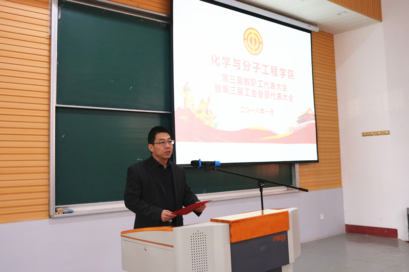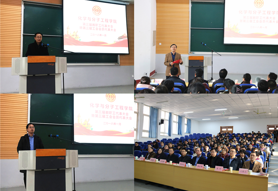 1月5日下午,化学院第三届教职工代表大会暨第三次工会会员代表大会在四方校区二教101教室召开。副校长吕万翔,校工会副主席徐瑞成,化学部、化学院、重点实验室党政负责人等出席大会。120名双代会代表参加了会议,大会由学院党总支书记王德宝主持。