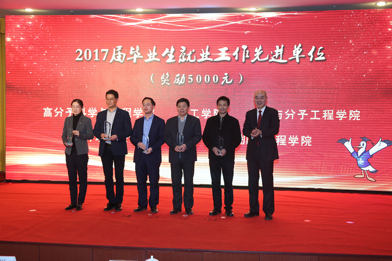 大会上,化学院凭借2017届毕业生就业工作考核和2017年度学生工作考核“双料第一”的优异成绩,荣获“毕业生就业工作先进奖”、“毕业生就业工作单项奖”,被授予“青岛科技大学2017届毕业生就业工作先进单位”、“2017年度学生工作考核优秀单位”和“2017年度学生工作先进集体”荣誉称号。
