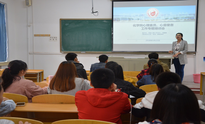 化学院长期重视学生的心理健康教育工作,积极开展“手语操比赛”、“心理知识竞答赛”等丰富的活动。本期“站长时间”结束后,刘施施给学院全体心理委员、心音使者召开了专题培训会,就如何了解身边同学、人际交往奥秘以及班级心理工作开展方式进行深入讲解。