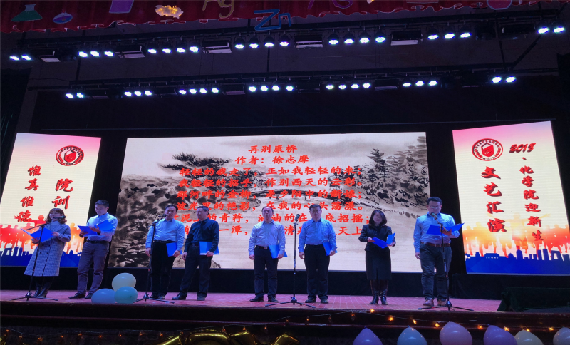 经过精心准备,汇演共分三大篇章17个节目。其中,化学学院党政领导干部和教师代表准备的新《再别康桥》,有机化学、物理化学教研室的诗朗诵《咏梅》、《我是科大人》,化学教研室的《海草舞》,基础实验中心的民族舞《山楂树》以及重点实验室、基础化学教研室、创新学科中心等带来的合唱串烧,引发了现场阵阵掌声。汇演现场,精彩的节目展现了化院教师立德树人的精神风貌和化院学子朝气蓬勃的个人风采。