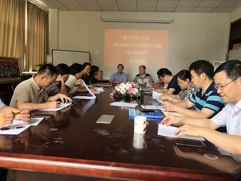 2019年7月16日下午,吃瓜网官网召开了推进“课程与专业建设、创建一流本科教学”教育思想大讨论暨学院教学工作委员会会议。学院党政领导及教学工作委员会委员共19人参加会议,会议由学院副院长高洪涛主持。化学院院长罗细亮首先就推进专业建设,建设一流本科专业总体工作做了部署。党总支书记王德宝要求党员发挥模范带头作用,教研室主任要一岗双责,党建工作深入到教学,围绕教学中心,把本职工作做好。