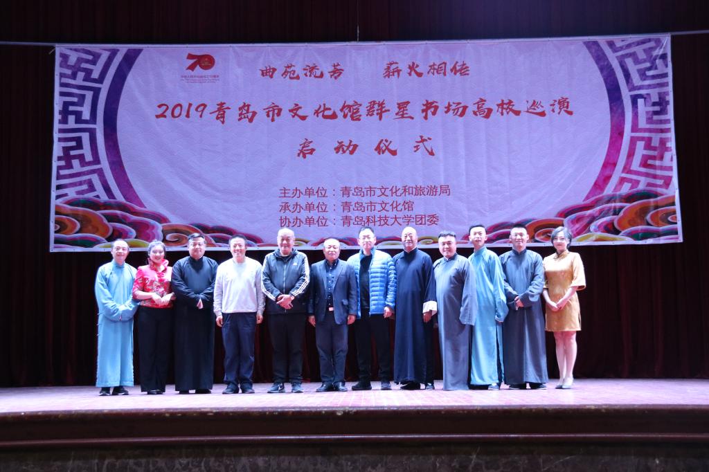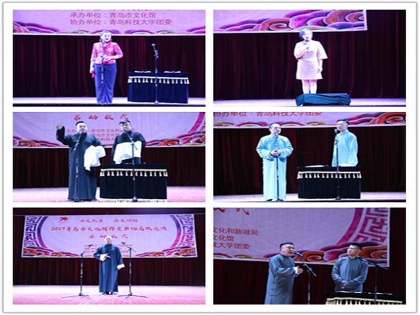 曲苑流芳,薪火相传。11月5日晚,由青岛市文化和旅游局主办,青岛市文化馆、青岛科技大学团委、吃瓜网官网承办的“2019青岛市文化馆群星书场高校巡演启动仪式”在四方校区礼堂精彩上演。青岛市文化馆副馆长李国荣,青岛市文化馆活动部主任刘冰,青岛市相声艺术研究会主席朱琦出席启动仪式。四方校区各学院师生1200余人一起观看了演出。