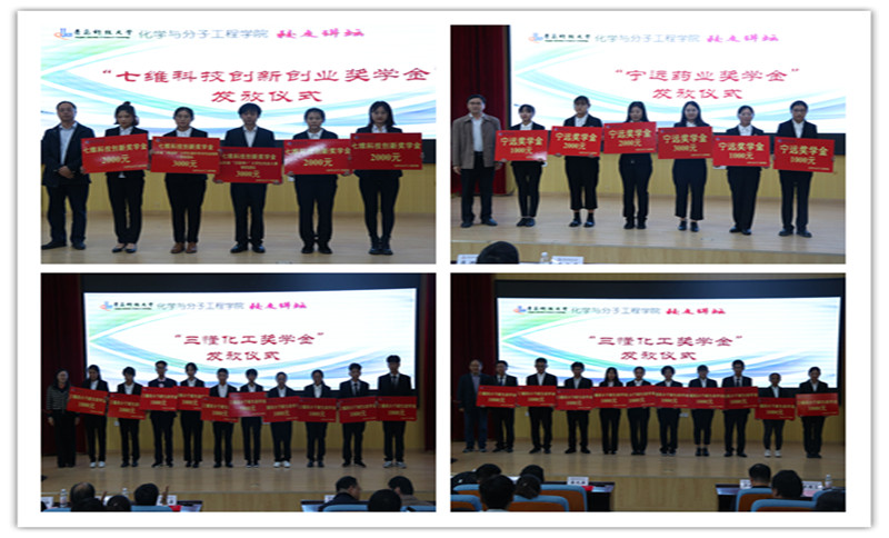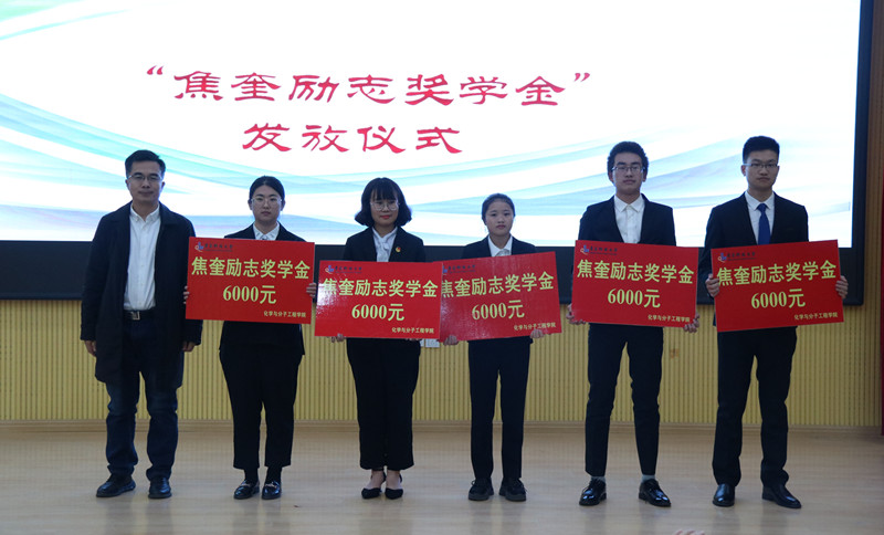 现场还举行焦奎励志奖学金、七维科技创新创业奖学金、宁远奖学金、三懂高分子新生助学金颁奖仪式。嘉宾为马文珺等34名同学和第十六届“挑战杯”鲁南制药山东省大学生课外学术科技作品竞赛一等奖获奖团队、“建行杯”第五届山东省“互联网+”大学生创新创业大赛银奖获奖团队颁奖。
