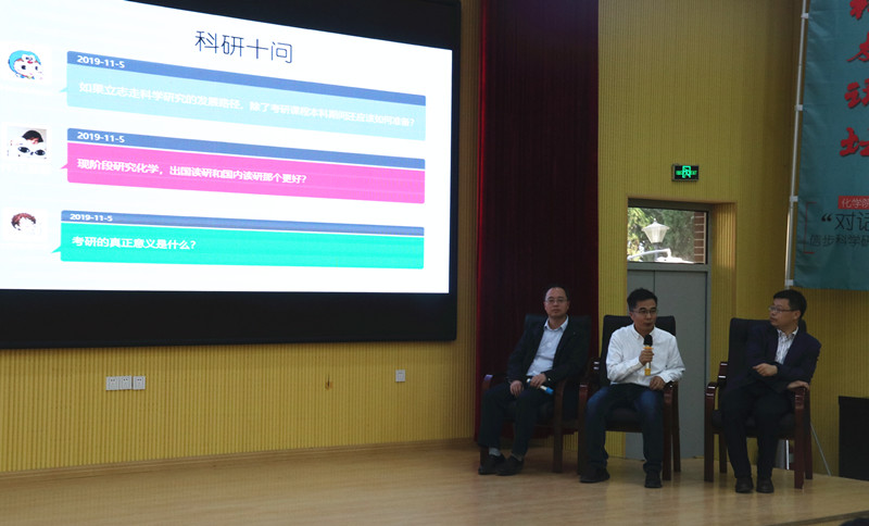 崔光磊作题为刚柔并济的聚合物电解质:从基础研究到全海深电源系统的报告。报告中,崔光磊分析了目前高比能固态锂电池技术的研究背景,指出纯电动车电池存在的问题、提升动力电池能量密度的方法、1990-2025年锂电池能力密度发展路线预测以及全海深电源系统循环的开发技术现状。在校友导师与学生的“对话”环节,导师们针对新同学提出的“科研十问”答疑解惑。