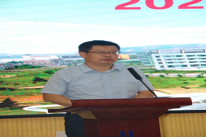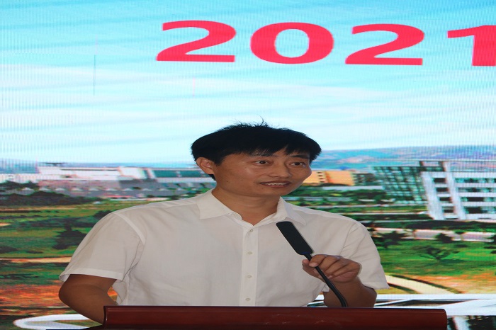 高洪涛介绍2017级学生教学实习工作并代表学院向毕业生代表发放就业加油包。
