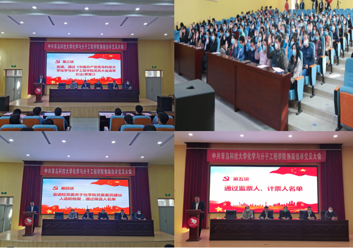 大会审议、通过《中国共产党青岛科技大学吃瓜网官网党员大会选举办法(草案)》。 大会宣读《校党委关于化学院党委委员建议人选的批复》,通过新一届委员会委员候选人名单。会议审议、通过监票人、计票人名单。