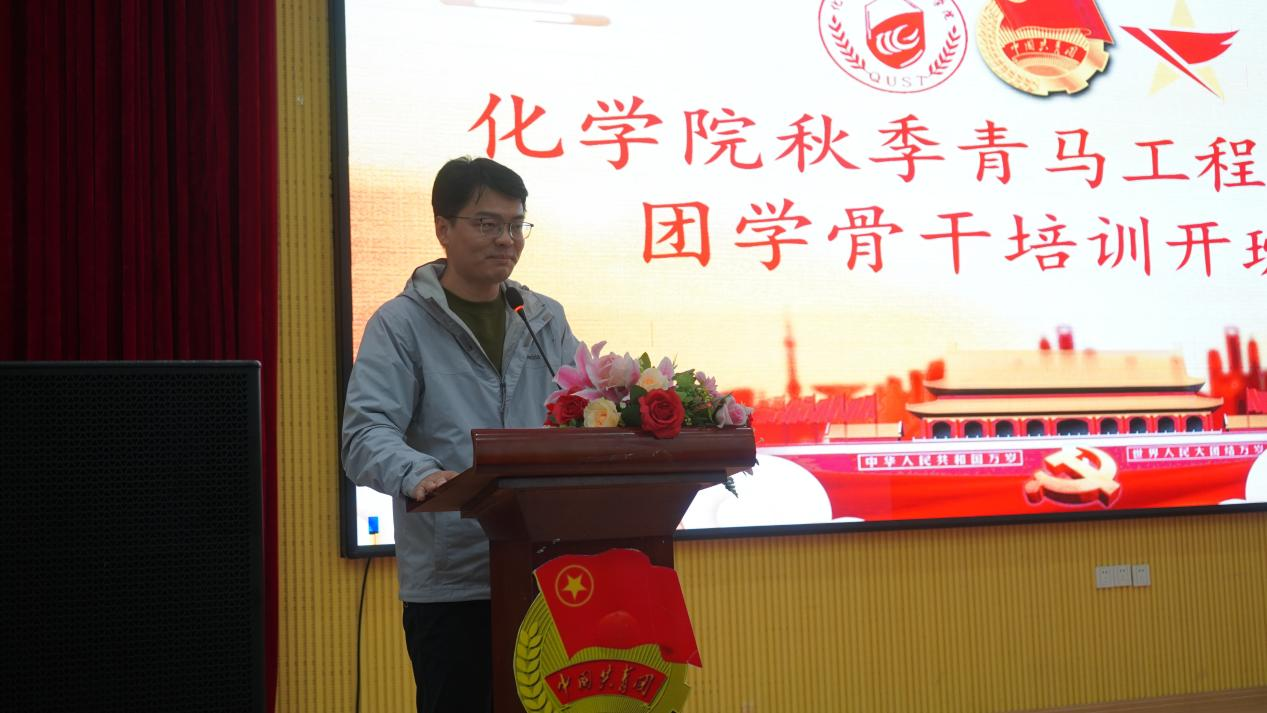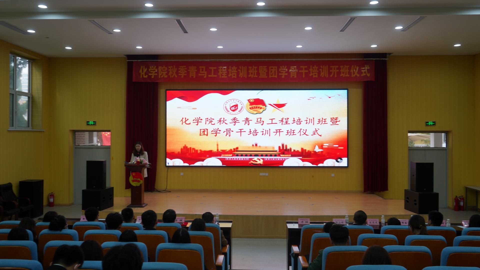 为深入贯彻落实习近平总书记关于青年工作的重要思想,按照团中央文件《青年马克思主义者培养工程实施纲要》和学校团委相关部署要求,10月26日下午,化学院2021年秋季青马工程培训班暨团学骨干培训开班仪式在四方校区尚舜报告厅举行,化学院党委书记王德宝教授、校团委兼职副书记、艺术学院李猛副教授、化学院党委副书记兼副院长杨小明老师、分子科学与工程教研室主任吕健教授、有机化学教研室郭维斯副教授、化学教研室宋志灵副教授以及学院团委全体辅导员老师、学院青年讲师团成员以及此次“青马工程”培训班学员共计100余人参加本次活动,活动由学院团委书记刘施施老师主持。