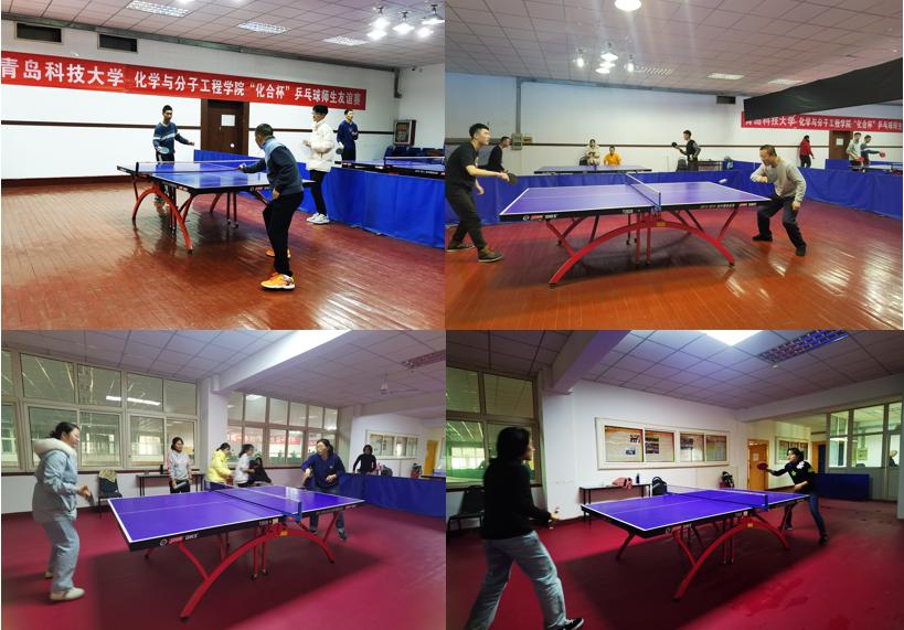 为丰富我院师生的业余文化生活,响应学校“爱体育·兴科大”的号召,达到相互交流,促进感情,锻炼身体,增强体质的目的,激发广大师生参与体育活动的热情,化学院于12月7日下午在西礼堂二楼乒乓球活动室举办“化合杯”乒乓球师生友谊赛,比赛展示了化学院师生“惟真惟德”风貌,不仅切磋了球技,更增进了师生情谊。