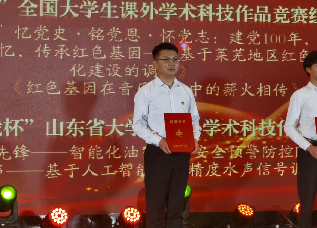 为认真学习贯彻习近平总书记关于青年工作的重要思想及考察中国人民大学重要讲话精神,迎接党的二十大胜利召开,学校评选出青岛科技大学第十五届“十大杰出青年”及“十大杰出青年特别奖”颁奖。我院2019级研究生张曾荣获“十大杰出青年”荣誉称号。在学校庆祝共青团成立100周年“永远跟党走·建功青科大”主题实践团课上,校长陈克正为张曾等学生颁奖。