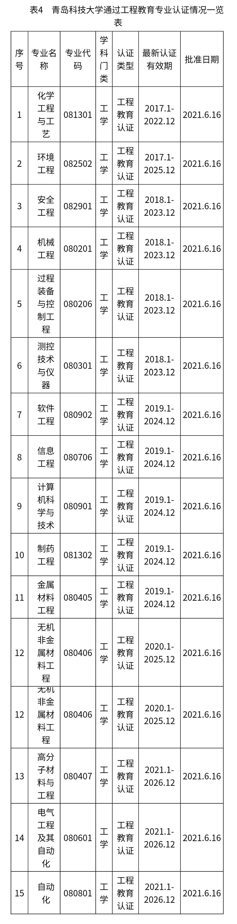 第十次党代会召开至今,学校先后新增7个新工科专业,另有3个新工科专业新增申请已于本年度上报教育部。目前全校共有76个本科专业,其中在招专业72个,涵盖理、工、文、经、管、医、法、艺、教9个学科。专业认证成绩优异,截至目前,学校共有15个专业18次通过工程教育专业认证(表4),位居全国高校并列第25位、省属高校第2位,学校专家、教师主编的《高校工程教育专业认证工作参考手册》在高等教育出版社出版。