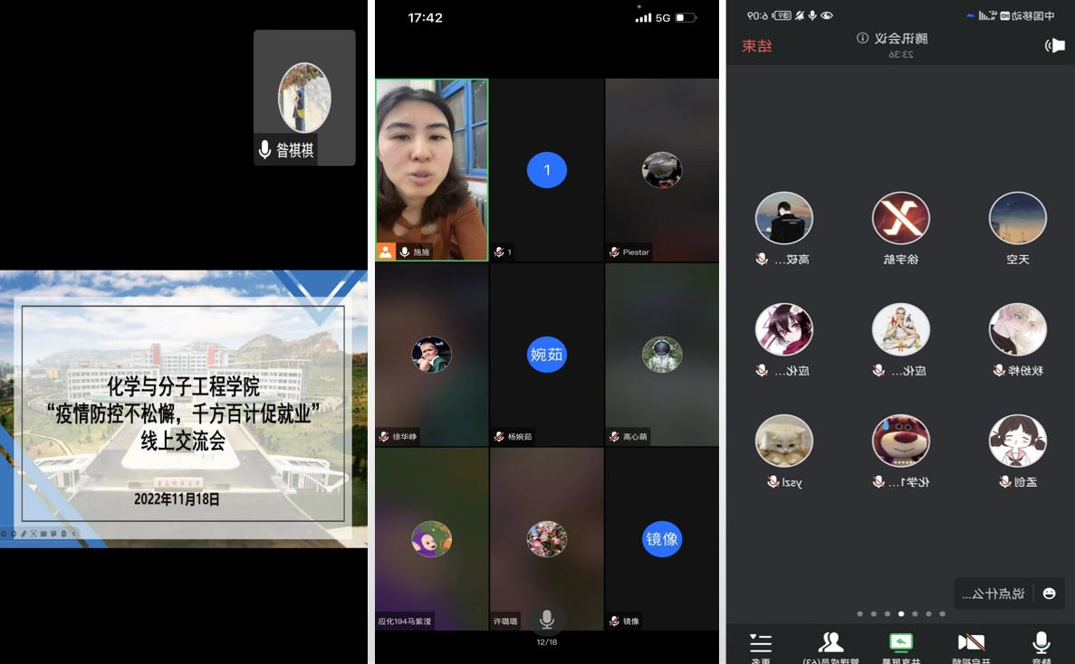 为扎实做好常态化疫情防控和2023届毕业生安全、高质量就业工作,11月18日,化学院毕业班辅导员刘施施、昝祺祺通过腾讯会议线上方式召开“疫情防控不松懈,千方百计促就业”线上交流会。