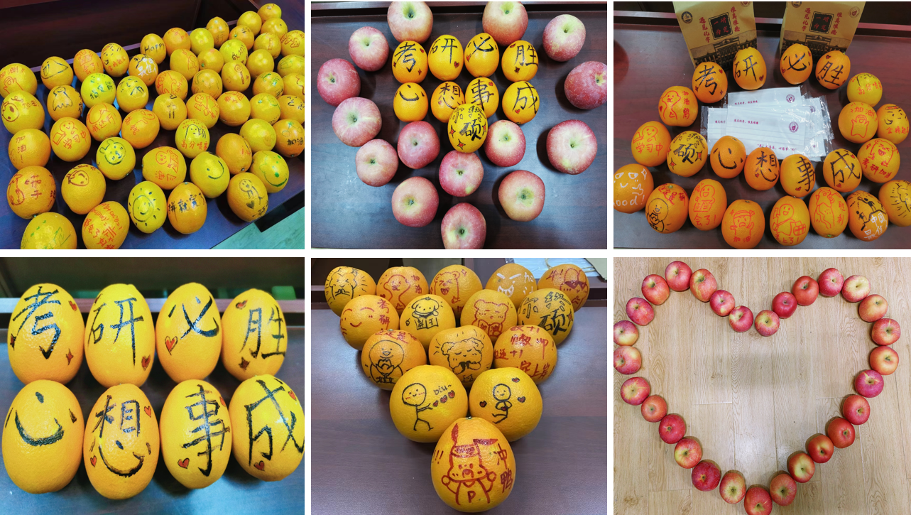 为帮助2023届考研学子坚定备考信心,缓解考前焦虑,传递学院的温暖和关怀,鼓舞考研士气,营造和谐温暖的学院氛围,11月22日、23日,化学院举行“苹”安相伴,心想事“橙”,一“研”为定——化学院考研加油助力活动。