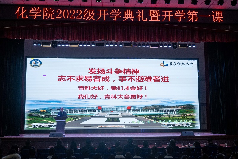 2月28日下午,化学院2022级新生开学典礼暨开学第一课在四方校区西礼堂举行。校党委学生工作部副部长曹永俊、校团委副书记陈兵、学院党委书记王德宝、学院党委副书记兼副院长杨小明、学院专职组织员张同雷、青岛市教学名师于跃芹、专业教研室代表、全体辅导员及2022级新生参加活动。副院长高洪涛主持开学典礼。