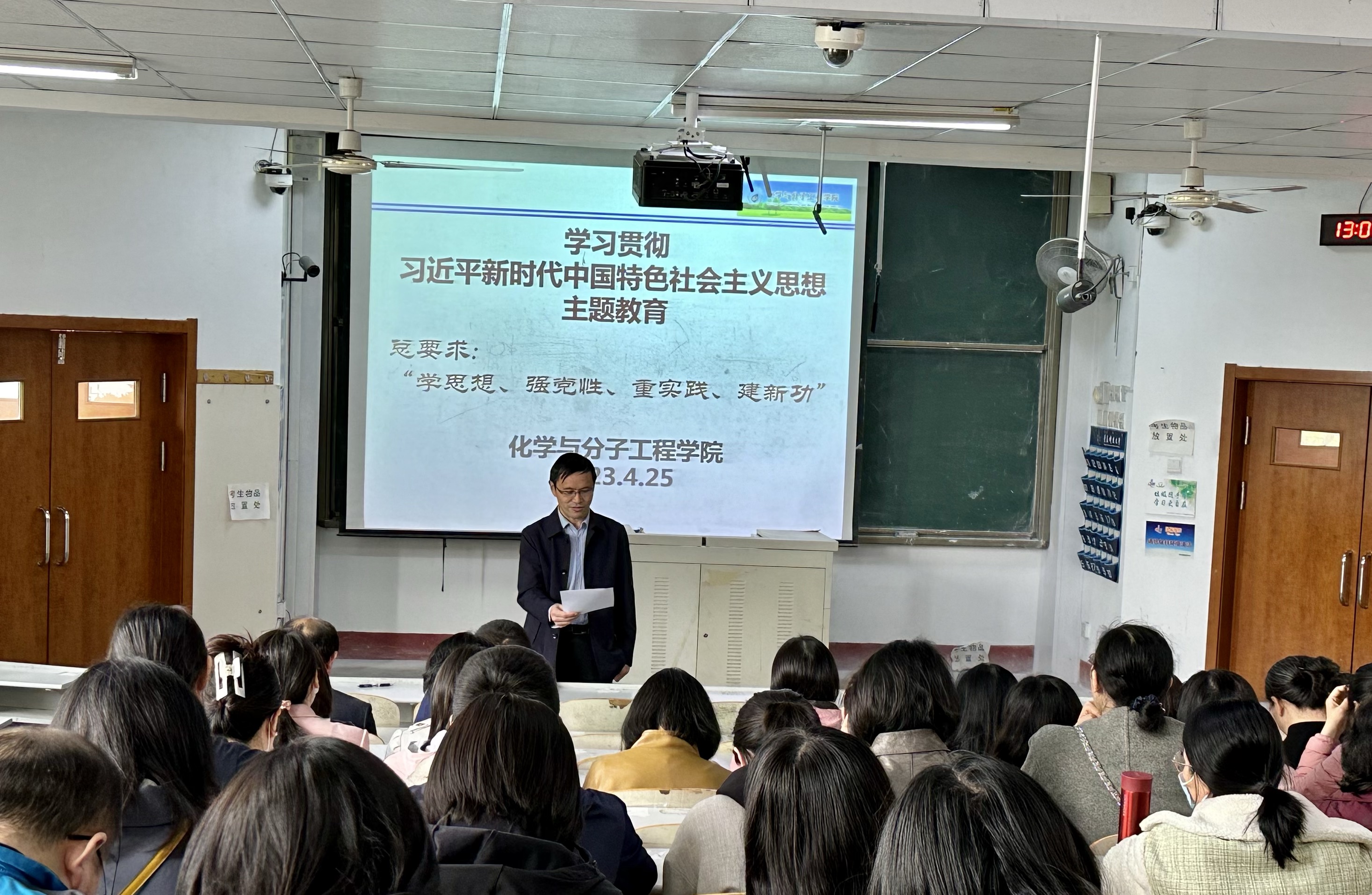 4月25日,化学院召开学习贯彻习近平新时代中国特色社会主义思想主题教育动员大会,学院党委书记王德宝主持会议,化学院全体教职工参会。