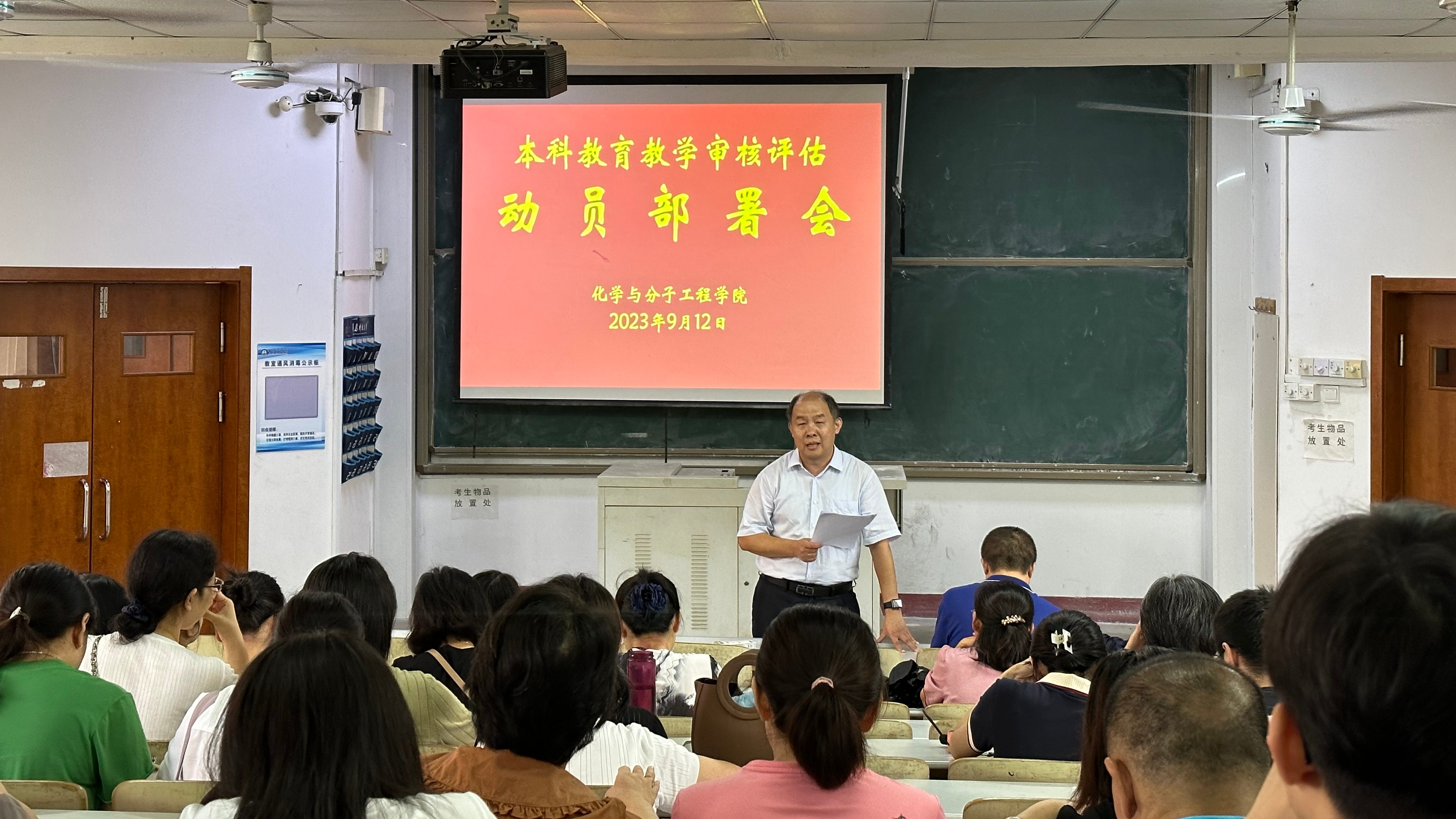 王德宝在讲话中指出:新一轮本科教育教学审核评估是对“十四五”新发展阶段我国普通高等学校本科教育教学工作的全面把脉诊断,是深化新时代教育评价、教育督导改革的重大举措,关系到学校学院未来发展的全局,希望全体教职员工要“以本为本”,做到“四个回归”。王德宝针对新一轮本科教育教学审核评估工作提出三点希望:希望大家要认真研读新一轮本科教育教学审核评估工作相关材料,注重学习借鉴、沟通协调和总结提升;希望大家要认真梳理总结人才培养中的经验特色,本科教育教学是大学生存的根本,本轮评估的显著特点是“用自己的尺子量自己”,在人才培养方案中“该说的是否说了”“说了的是否做了”“做了的是否有效”“无效的是否改了”,自己要心知肚明;希望大家要提高主人翁意识和工作主动性,化学院是大家的化学院,化学院好,人才培养好,我们大家才更好,我们要强化责任、担当作为,主动摆进去,圆满完成评估工作任务。