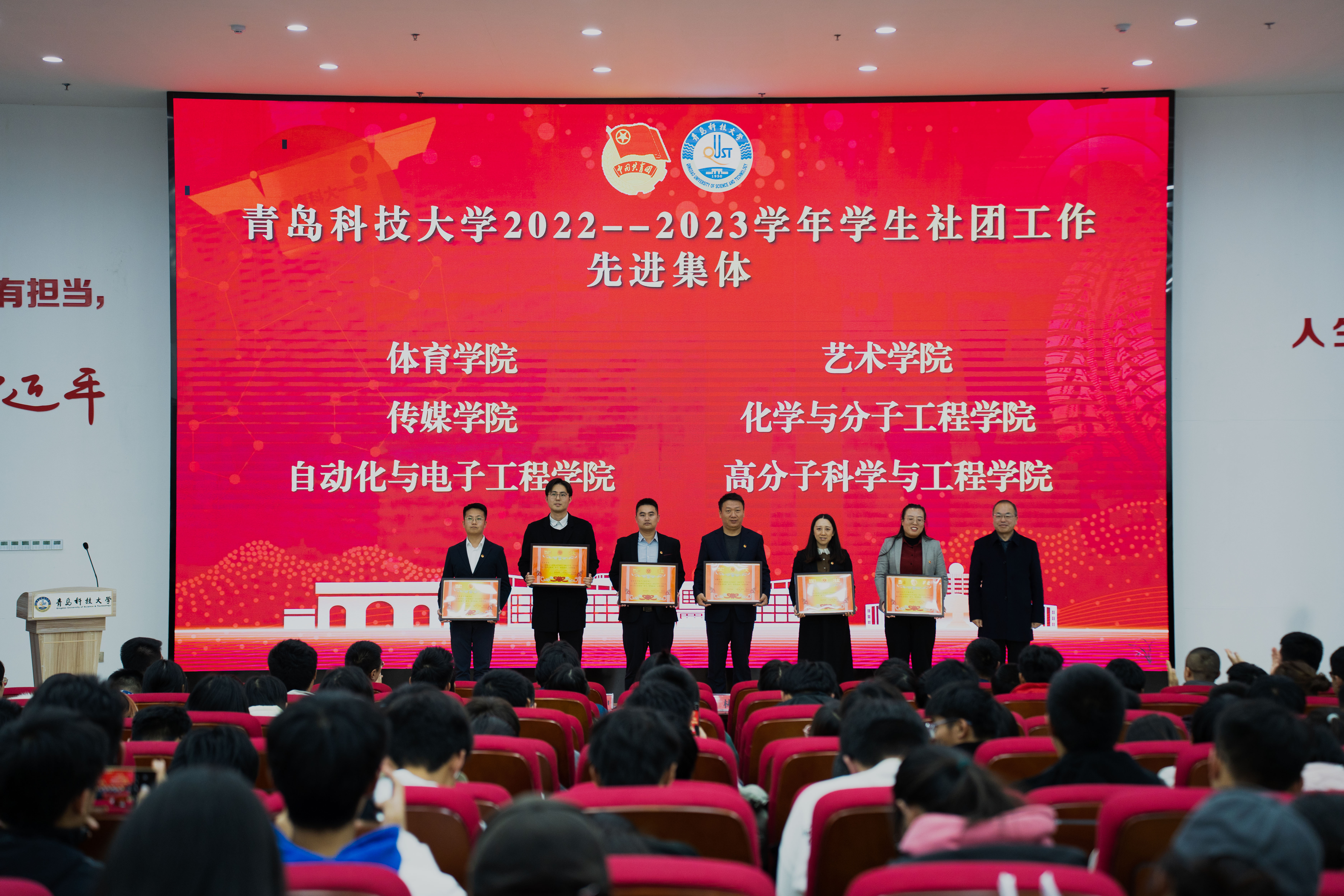 会上,校团委全面总结学生社团工作开展情况并就安排部署了下步工作。会议表彰了青岛科技大学2022--2023学年学生社团工作先进集体、优秀学生社团、学生社团优秀指导老师、学生社团工作先进个人,与会领导为获奖集体及个人颁奖。会议公布了《关于举办青岛科技大学第二十届学生社团文化节的通知》,并就学生社团规范建设进行专题辅导,优秀学生社团指导老师代表、优秀学生代表分别进行工作交流发言,优秀社团代表进行了社团风采展示。
