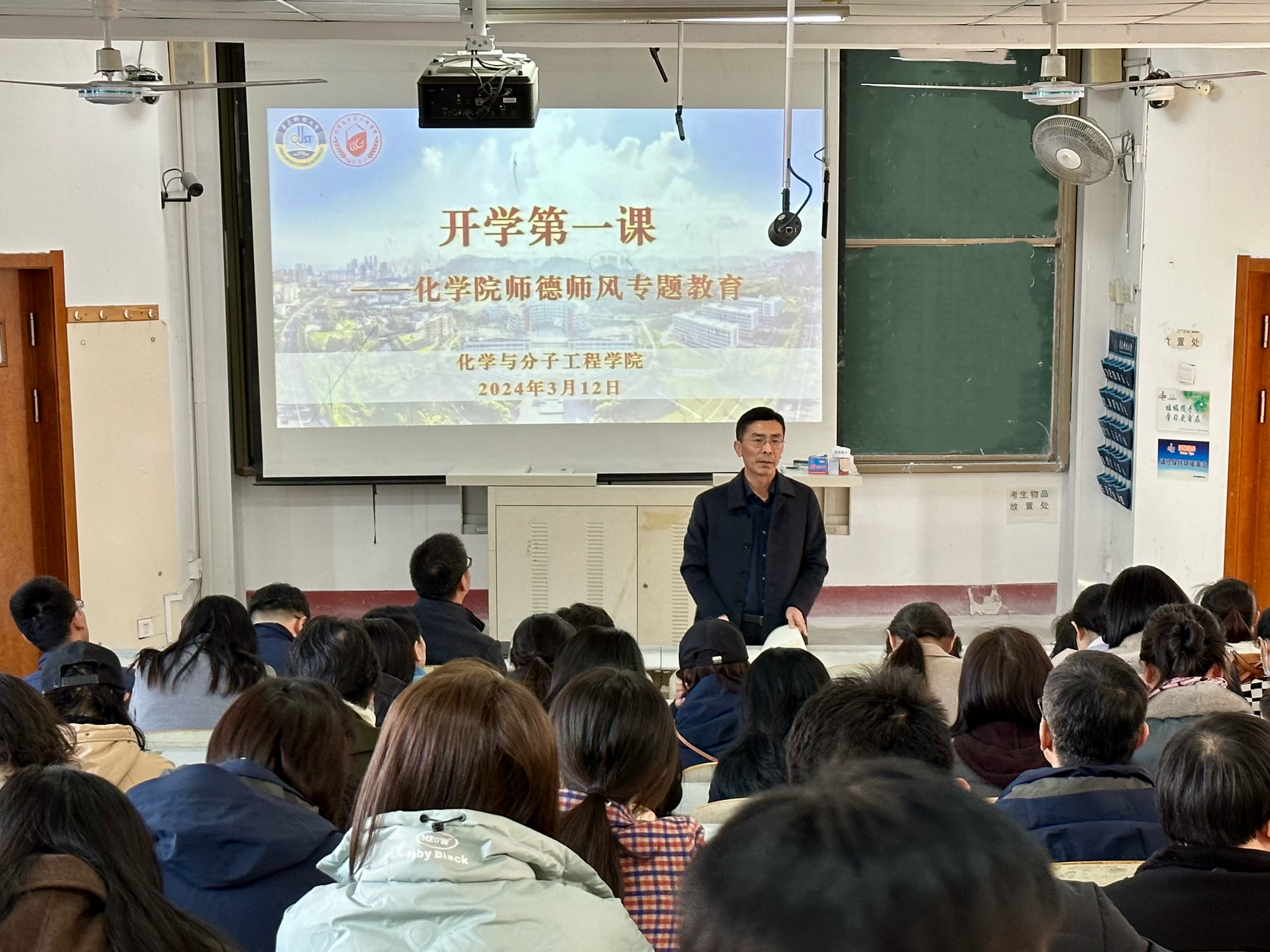 思想动员课。召开全院教职工大会,结合化学院发展实际对新学期工作进行安排部署。鼓励教师夯实教学基础,筑牢学术根基,全力推进“有组织科研”,主动按照“四个面向”“两服务一引领”开展科学研究,以不懈前进的奋斗姿态将创新贯穿全年工作。化学院党委书记肖强以《行为世范,学为人师》为主题,向全体教职工开展师德师风教育。他强调,全院教职工要大力弘扬教育家精神,努力做精于“传道授业解惑”的“经师”和“人师”统一的 “大先生”,做有理想信念、有道德情操、有扎实学识、有仁爱之心的“四有”好老师,为强国建设、民族复兴伟业作出新的贡献。