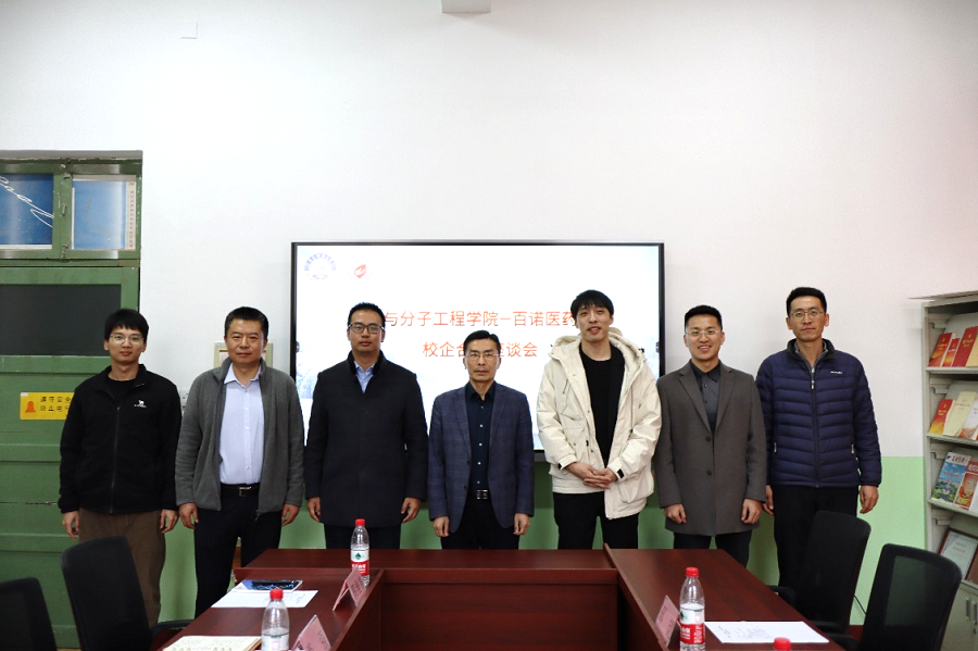 座谈会上,肖强对田新宇一行来院交流座谈表示欢迎,对百诺医药长期以来对学院就业工作支持表示感谢。汪恕欣介绍了学院办学特色、学科优势、产学融合发展等方面的基本情况,并就人才培养、学生培养方案改革等问题听取了企业的意见。