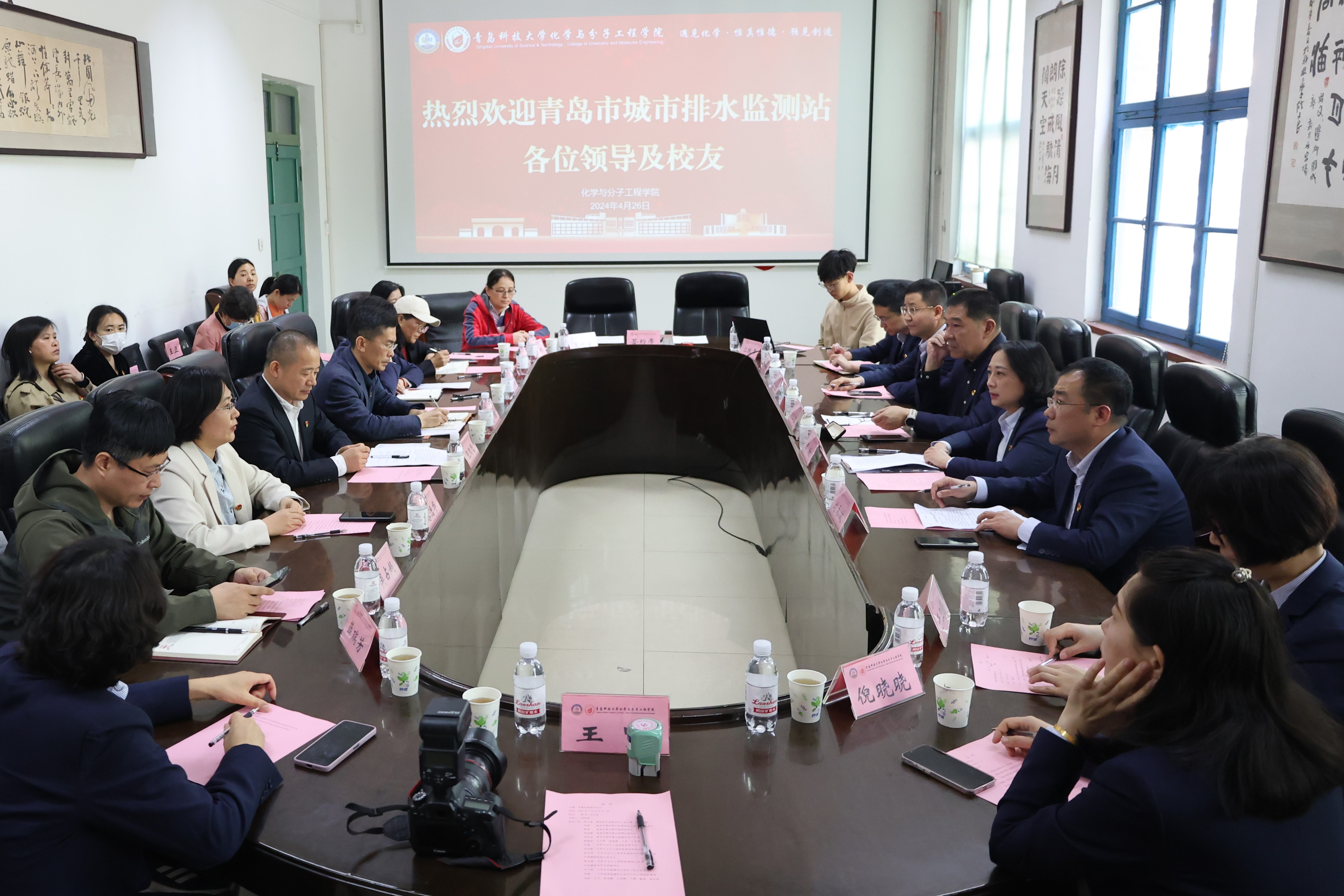 为深入学习贯彻习近平新时代中国特色社会主义思想,进一步探索创新党建工作机制,加强党支部的核心引领作用,切实发挥各自资源优势,提升党建引领业务工作成效,进一步深化党员学习教育,以党建联建为动力,4月26日青岛排水有限公司工会主席、总工程师梁卫东、青岛市城市排水监测站党支部书记、副站长李翔、青岛市城市排水监测站站长雷鸣、青岛市城市排水监测站副站长吴国强、青岛市城市排水监测站技术负责人、劳模代表刘永波校友一行来我院开展党支部共建交流活动。吃瓜网官网党委书记肖强、副处级组织员张同雷、各党支部书记、教师代表、学生代表参加活动。