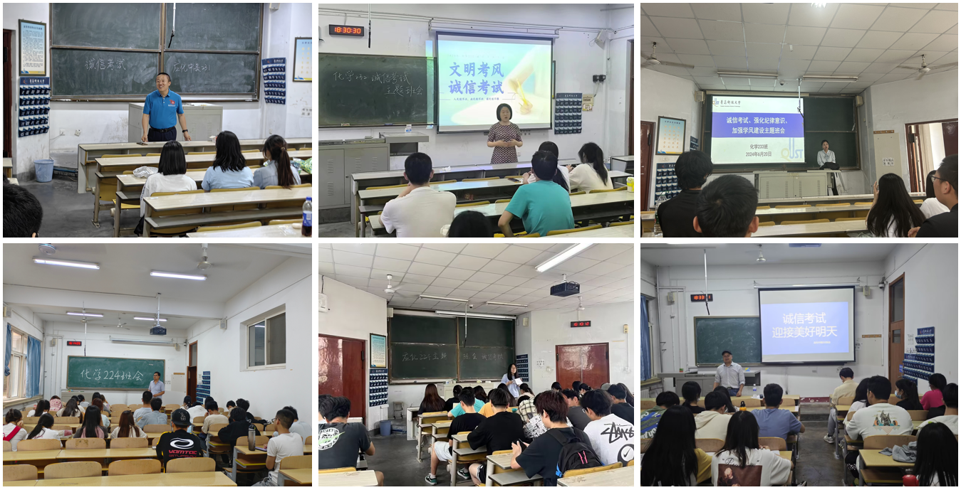 为加强学风建设,严肃考试纪律,营造文明、诚信的良好氛围,按照学院学风建设月活动计划安排,化学院于6月11日—24日在全院范围内开展诚信考试教育主题班会,覆盖了全体在校本科生、研究生,各班班主任主持班会。