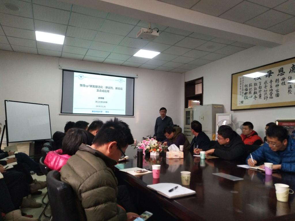 2018年12月25日下午三点,应青岛科技大学吃瓜网官网邀请,浙江大学史炳锋教授来访,在一号实验楼302会议室作了题为“惰性sp3碳氢键活化:新试剂、新反应及合成应用”的学术报告。报告会由化学学院副院长胡志强教授主持,图书馆李明馆长及化学院相关专业的师生参加了学术交流。史炳锋教授介绍了其课题组近五年在sp3碳氢键活化领域取得的最新进展,包括很多未发表的新工作,激发了老师和同学们的浓厚兴趣。