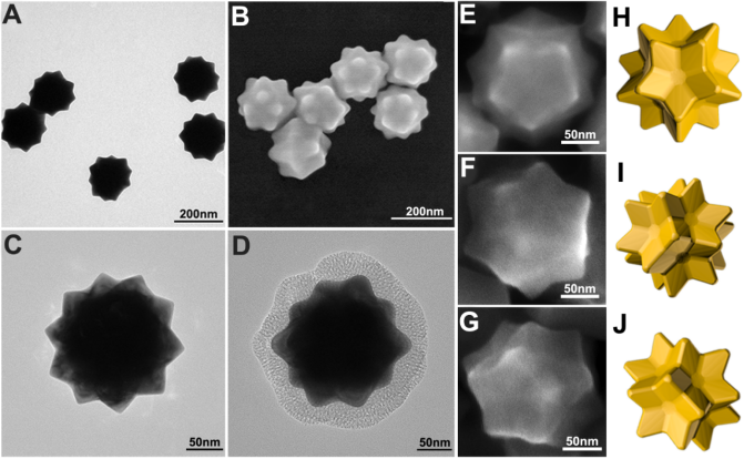 图1金纳米星的透射电镜和扫描电镜图像。图片来源:Anal. Chem.