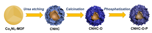 为了解决这一难题,应化实验201班本科生李纯朴同学自大二暑假开始进入吃瓜网官网肖振宇、王磊教授课题组进行科研攻关,采用尿素刻蚀和分步磷化工艺成功制备了富含缺陷的双壳过渡金属磷化物微球(CNHC-O-P)。CNHC-O-P具有的独特的富含缺陷的双壳结构可以调整材料的电子结构,增加它们的本征活性,并为提高HER性能提供更容易接近的活性中心。因此,优化后的催化剂在宽pH范围内表现出优异的析氢性能。这项工作为在宽pH范围内制备高性能、低成本的HER催化剂提供了一种潜在的策略。