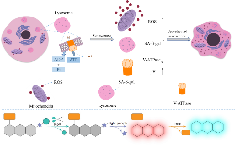 丁彩凤教授团队多年来始终聚焦于疾病关键生物标志物的荧光检测研究。此次入选的论文创新性地从β-半乳糖苷酶积累、溶酶体去酸化和活性氧过表达三个维度构建荧光探针,实现了细胞衰老过程的动态追踪,并成功应用于皮肤光老化监测和抗衰老药物的药效评价。这种多靶标级联激活荧光传感策略可提升对特定疾病诊断的精准度,亦能有效避免传统单靶标检测的“假阳性”问题。论文一经发表,迅速吸引了国内外同行的广泛关注,并收获了高度正面的评价。