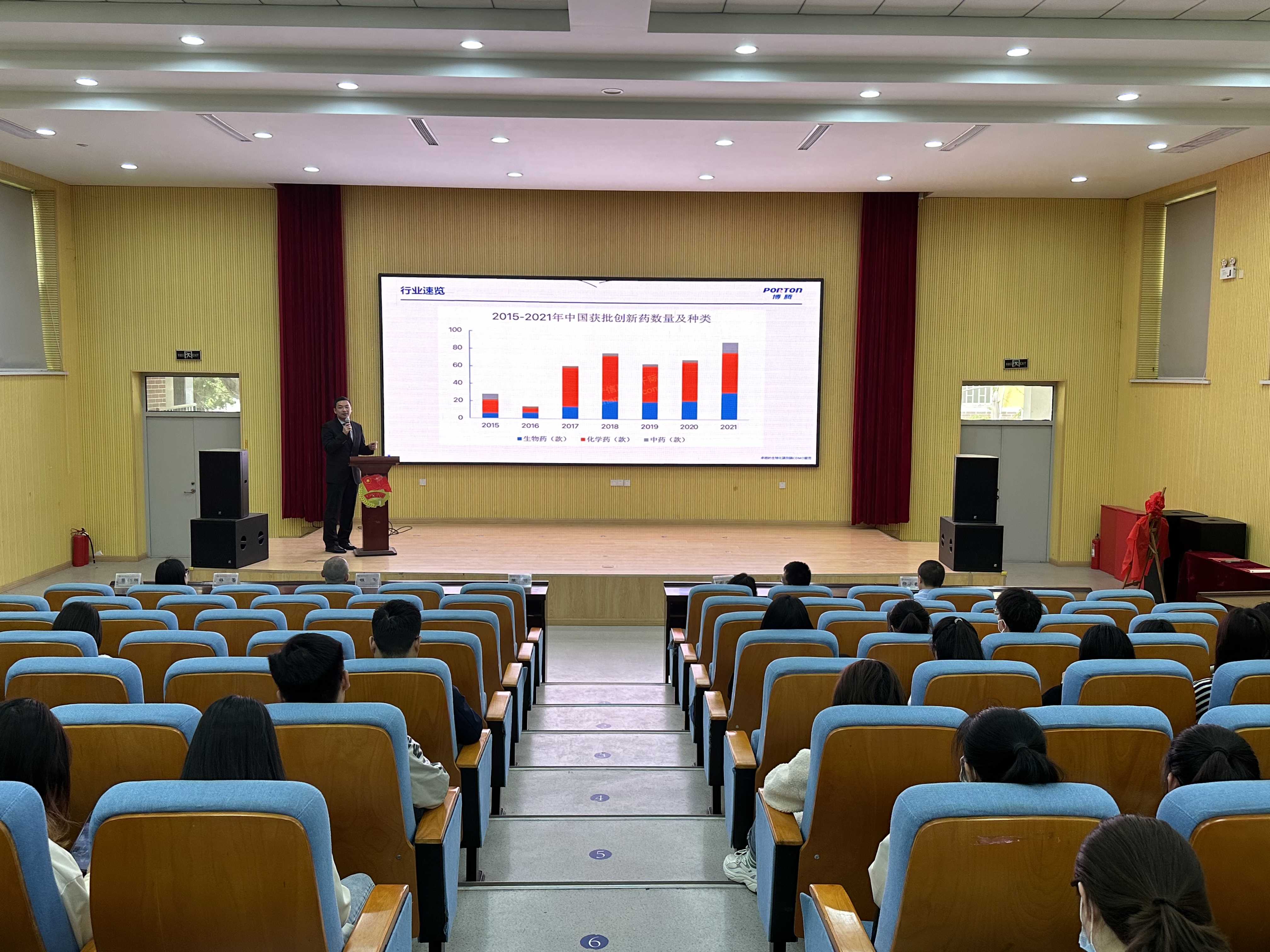 随后,陈博为现场近200名研究生作了题为“站在行业发展风口上的博腾”的求思得论坛报告,陈博先生结合新冠疫情期间化学生物药的营收、研发、守护人民生活健康等方面切入,认真分析了我国医药企业的发展现状、发展空间和未来愿景。陈博指出:21世纪,生命科学迎来了难得的发展机遇,有机合成、分析化学大有可为。最后,陈博以博腾与世界知名药企的合作为切入点,介绍了“技术创新”和“服务创新”的开放协作CDMO平台的博腾发展的未来愿景,期待更多科大学子的加盟,共创未来事业发展。