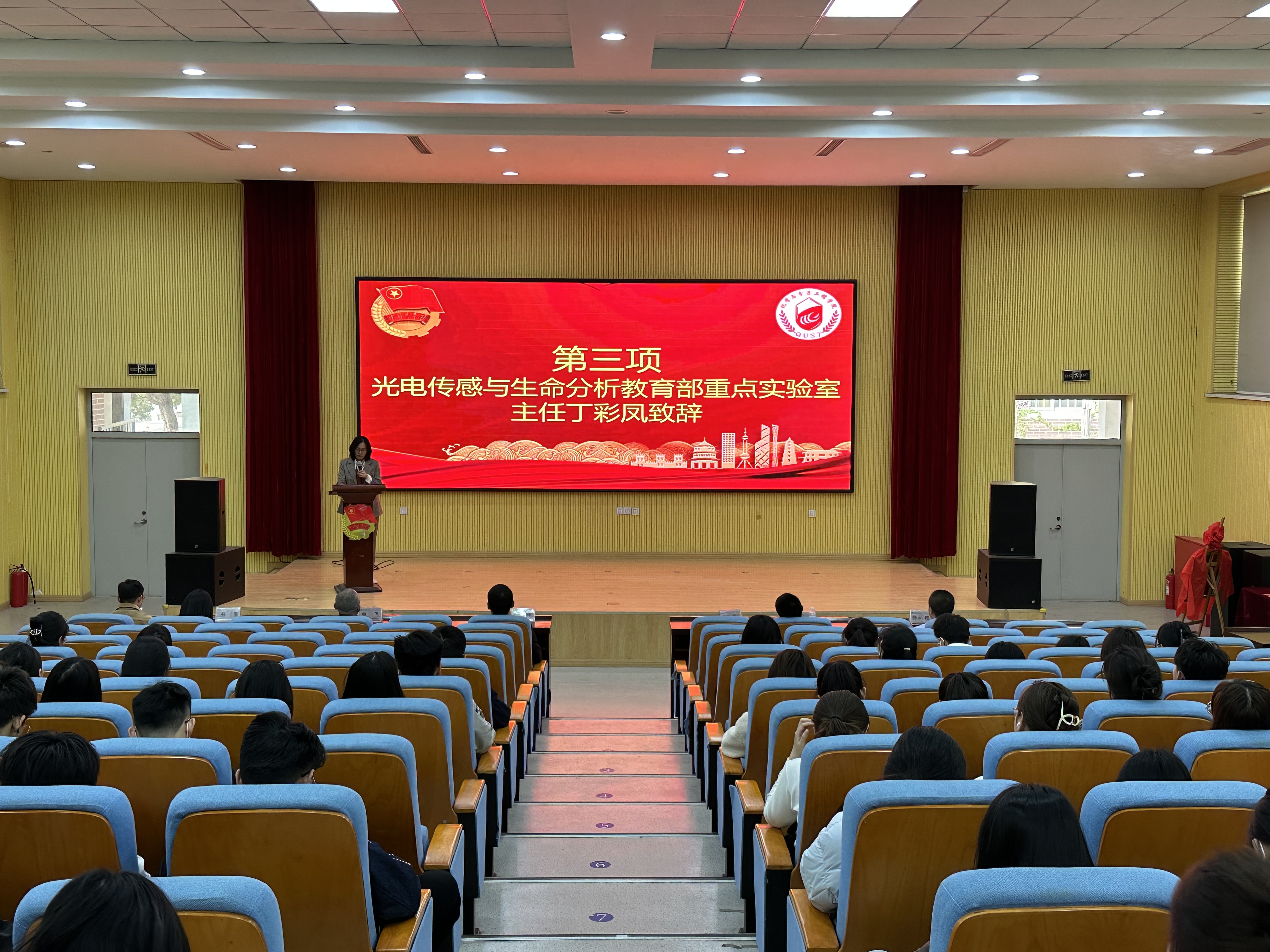 随后,博腾研究生奖学金颁奖仪式暨双方战略合作签约仪式在四方校区尚舜学术报告厅举行。光电传感与生命分析教育部重点实验室执行主任丁彩凤致辞,丁彩凤首先介绍了学校学院的基本情况,尤其是学院在有机合成、分析化学长期沉淀的科研优势。丁彩凤指出:青科大化学院和博腾股份一定可以携手共同为行业技术创新、为产教融合战略深化、为行业领军人才的培养探索新的更多经验、做出新的更大贡献。丁彩凤希望获得奖学金的同学能够学习博腾股份大爱无疆的奉献精神,扎实做好科研,用实际行动回报企业,回报这个伟大的时代。会议为15名博腾研究生奖学金获得者举行了颁奖仪式。