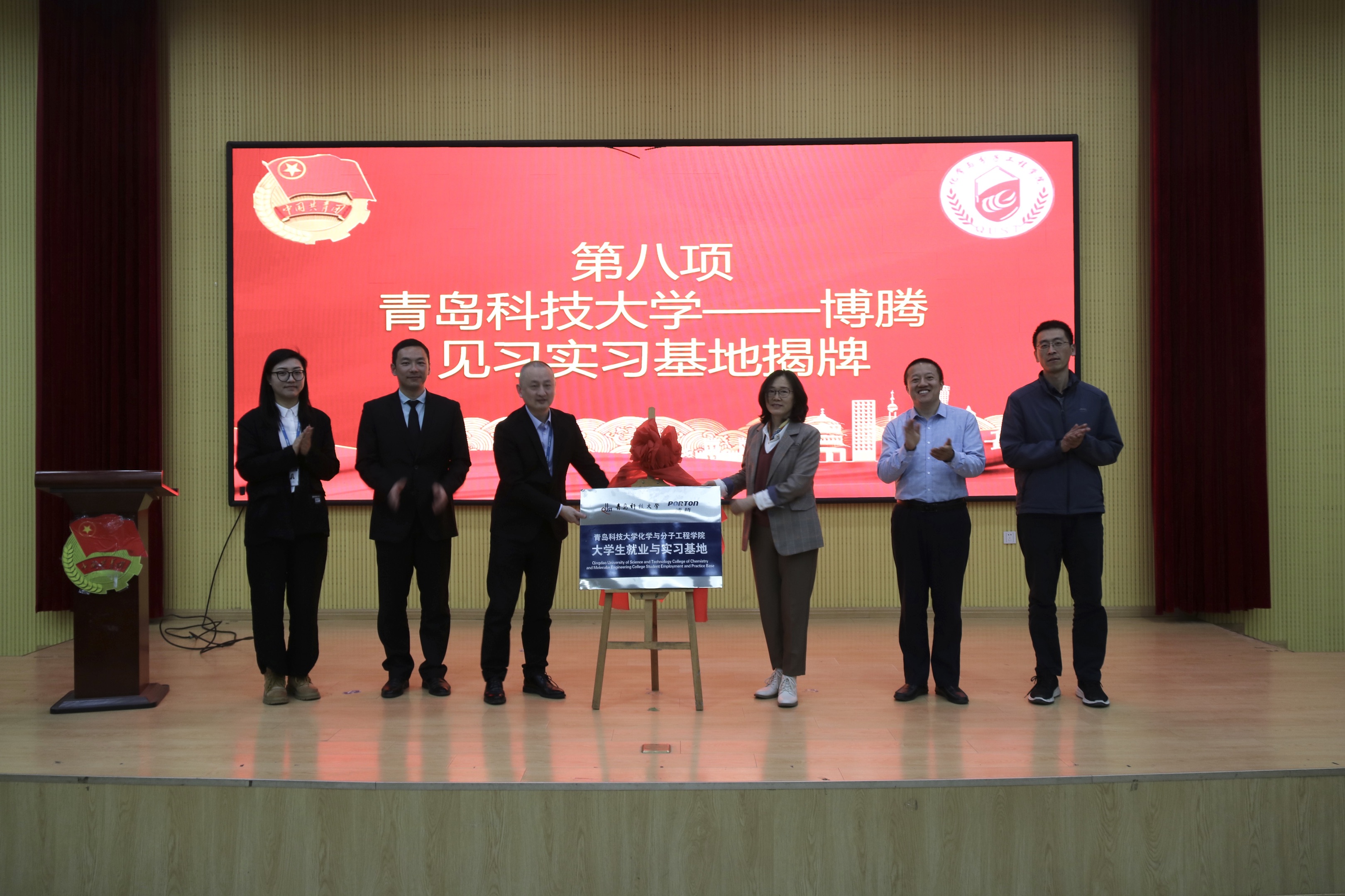 会上,双方举行了《重庆博腾制药科技股份有限公司与青岛科技大学吃瓜网官网合作协议》的签约仪式,程飞、丁彩凤共同为“青岛科技大学吃瓜网官网大学生就业与实习基地”揭牌。博腾股份小分子事业部陈博、杜蕾、蔡仁辉、杨小明、郭维斯、近200名研究生见证签约揭牌仪式。