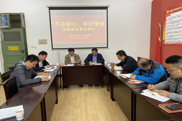 10月21日上午,化学院党总支在一号行政楼227党员活动室开展“不忘初心、牢记使命”主题教育第二次集中交流研讨。研讨由党总支书记王德宝主持。