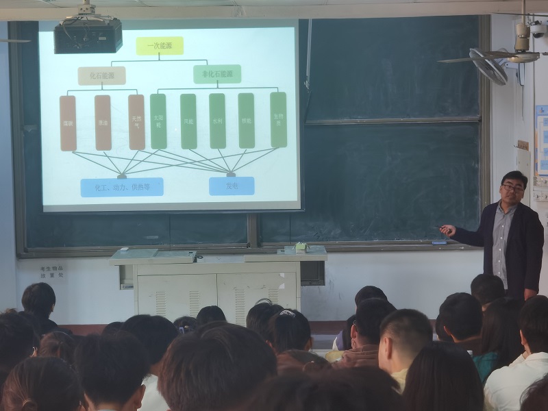 周忠敏教授以钙钛矿太阳能电池为题,从我国消耗能源的来源和能源消耗所带来的问题出发,阐述了研究太阳能电池的重要性,介绍了钙钛矿材料的基本特征和钙钛矿材料的优异特性。周忠敏教授详细讲述了钙钛矿太阳能电池的发展史,从液态到固态,从单节到叠层的巨大进步,依次向同学们介绍了钙钛矿太阳能电池的工作原理、电池结构和钙钛矿薄膜制备方法,增加了同学们对于钙钛矿电池的了解。随后周忠敏教授立足当下对钙钛矿太阳能电池的发展进行总结与展望,最后,周忠敏教授结合实验室工作强调,能源危机是世界上每个国家都需要面临的重大难题,青年学生作为新时代国家发展的主力军,要不断提高自身本领,立志为解决能源危机作出自己的贡献。在随后的互动环节中,学生提出了“我国钙钛矿太阳能电池近年来发展迅速,您认为从理论科研到实际应用还需要多久?在哪个方面还要继续加强?”的问题,周忠敏教授详细回答该问题,预测从理论到实际运用大约还需要15年左右,并且以后的工作在引入分子、固定晶界和降低材料缺陷等方面还要继续努力,周忠敏教授以此为契机鼓励同学们积极投身钙钛矿太阳能电池等科学研究,将自身发展与国家发展紧密结合,为国家实现双碳目标的发展作出贡献。会议最后现场响起了阵阵热烈的掌声,同学们与周忠敏教授进行了深入交流。