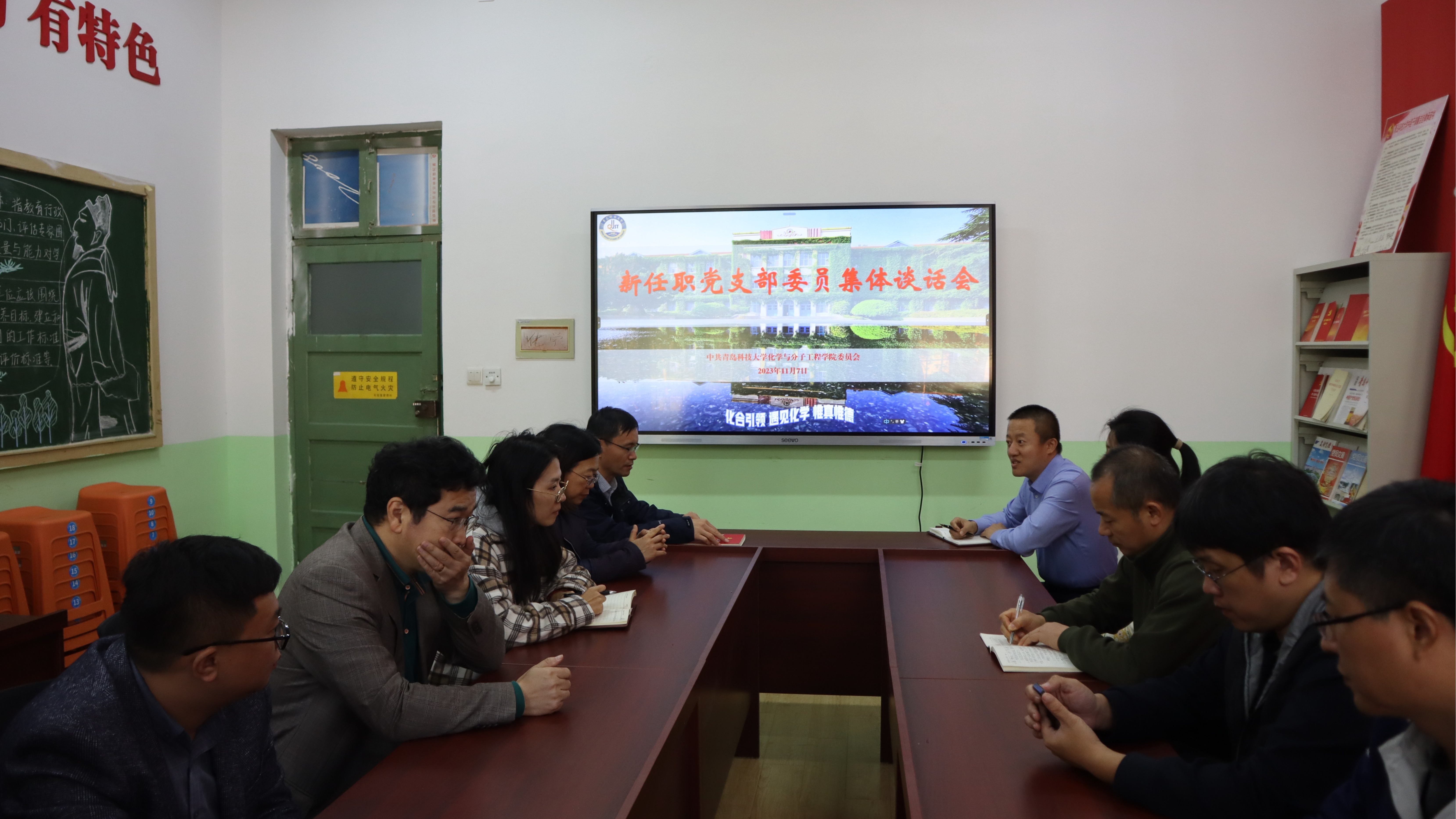 按照学校组织部关于基层党组织换届的部署安排,目前化学院各党支部均已圆满完成了换届选举工作,为我院党支部班子注入了新鲜血液。为落实上级关于加强基层党建工作的要求,进一步提升新任党支部书记及支部委员履职能力,11月7日,我院召开新任党支部书记及支部委员座谈会议,学院党委书记王德宝、副书记杨小明、副处级组织员张同雷以及各新任党支部书记及支部委员参加此次会议。会议由党委书记王德宝主持。